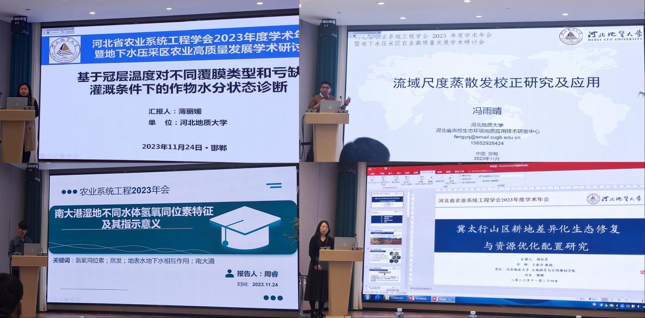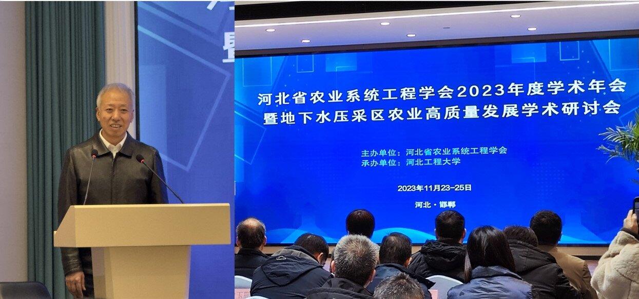 2023年11月23-25日,河北省农业系统工程学会2023年度学术年会暨地下水压采区农业高质量发展学术研讨会在河北邯郸隆重召开。会议河北省农业系统工程学会主办,河北工程大学承办,依托bat365官网建设的河北省高校生态环境地质应用技术研发中心与中国科学院遗传与发育生物学研究所农业资源研究中心等共同协办。来自中国科学院遗传与发育生物学研究所农业资源研究中心、国家信息中心、中国农业大学、中国地质科学院水文地质环境地质研究所、河北省农林科学院旱作农业研究所、河北工程大学、bat365正版唯一官网、河北师范大学、河北建筑工程学院等十多家相关高校、科研院所的专家学者参加了年会。bat365官网水资源与环境学院、地热学院院长、河北省农业系统工程学会副理事长于开宁教授出席会议,参加理事会、代表学会致辞并主持大会主题报告;青年教师鹿帅副教授、冯雨晴博士、薄丽媛博士及4名研究生参加了本次年会并作学术报告。会议期间,于开宁一行应邀赴中国煤炭地质总局第一水文地质队开展合作交流暨校友座谈。