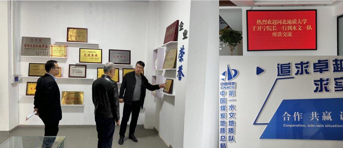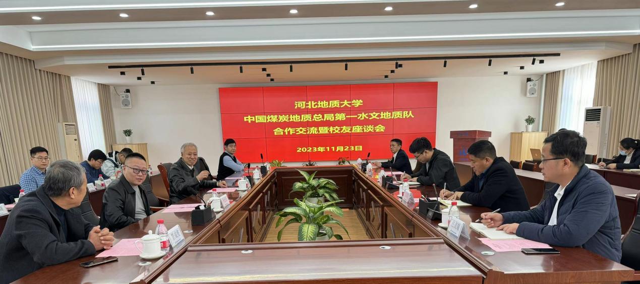 会议期间,于开宁一行应邀参加赴中国煤炭地质总局第一水文地质队开展合作交流暨校友座谈。队党委书记、队长程英好,副队长何波、副队长付宏学、副总工程师张贞瑞及市场经营部部长张晓楠等相关部门负责人,中煤水文地质局组织部部长王炳强、水工环勘查院院长关民全、第三水文地质队副队长宋凯,河北省地矿局第一地质大队原副队长景成虎,李金庆、刘雷超,温来福、贾乃茜、牛飞、邵杭杭、郭宁、仝潇、王帅民、李文浩等校友参加交流活动。