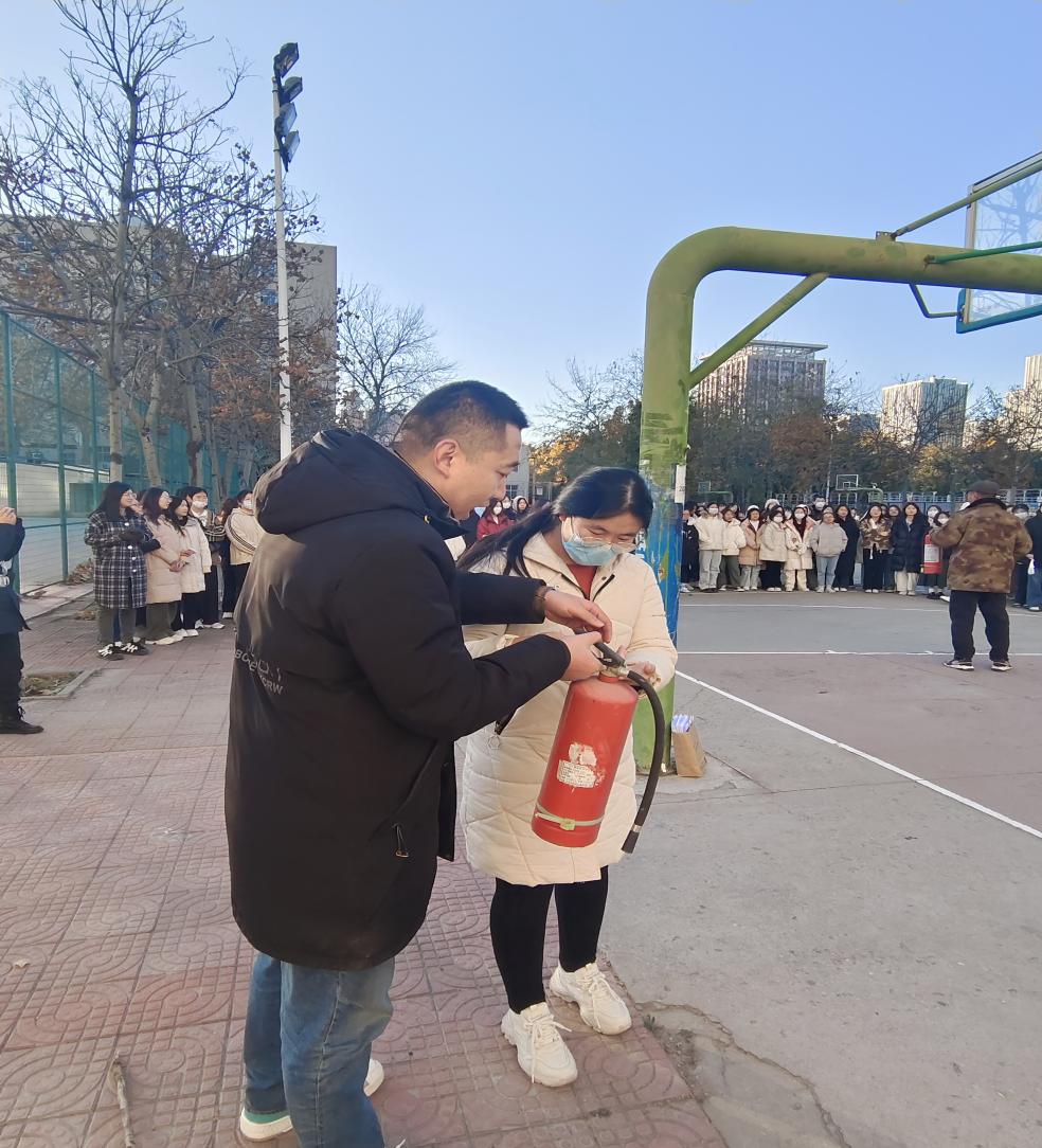 随后,消防专业人员在篮球场向参演师生演示了灭火器的使用要领,部分师生进行了扑灭火源的实操。