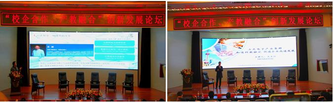 论坛还邀请了华为、阿里和河北唐讯等企业的行业专家围绕校企合作在高质量人才培养方面的相关工作及成果产出进行了案例分享。华为河北政企教育行业总经理于水成,全方位、多层次向我们介绍了华为公司概况,并对人才趋势政策进行了分析,最后结合公司特点介绍了华为在人才培养方面的支持和特色,如面向院校专业建设全流程服务,支撑数字人才培养闭环等。阿里云高级行业解决方案专家郭强,介绍了人工智能及ChatGPT的发展情况,并强调了“大模型”时代的人工智能对社会和未来发展的影响。阿里云通过“魔搭”社区开源算法和数据集,通过共享开放加速创新,促进中国人工智能生态的繁荣。阿里云同时向所有在校大学生提供了免费的云服务平台,为产教融合创新提供了基础的硬件环境。河北唐讯信息技术股份有限公司董事长王玉江介绍了唐讯公司概况,并立足电子产业集群,介绍了产教融合的人才培养理念和“双主体、深融合”产业学院建设的基本情况,强调了科教融汇在产业集群发展和人才培养中的关键作用。