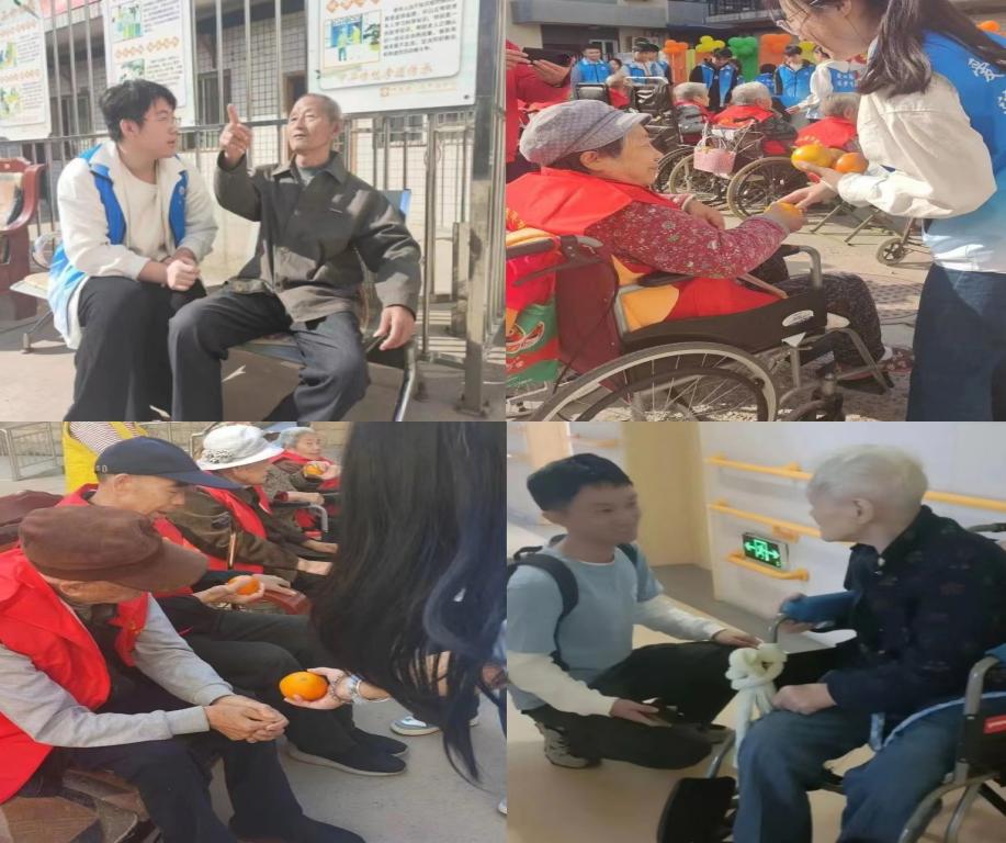 重阳,原为双九相逢,即九月初九。在《易经》中“九”为阳数,“九九”两阳数相重,所以称九月初九为“重阳”。明代张岱著《夜航船》云:“九为阳数,其日与月并应,故曰‘重阳’。”为传承尊老敬老的重阳传统美德,在重阳节到来之际,学生工作处勤工俭学爱心小分队开展了本次走进祥和敬老院,关爱并亲近老人的慰问活动。