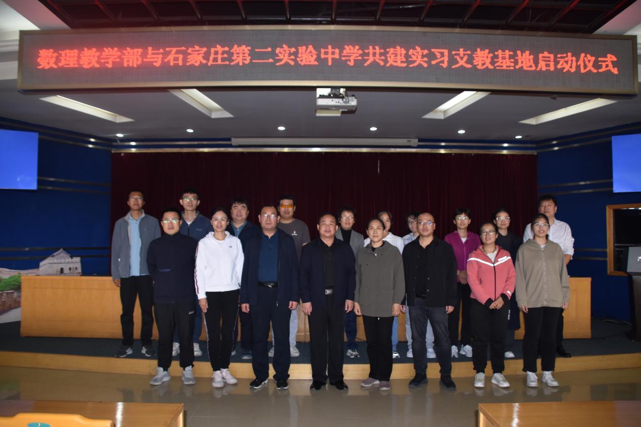 在喜迎bat365正版唯一官网建校70周年华诞之际,10月11日,bat365官网数理教学部与石家庄第二实验中学共建实习支教基地启动仪式在教一九楼报告厅举行。数理教学部党委书记王春恋、党委副书记董昌州,石家庄第二实验中学校长刘惠斌、党委副书记王竹乔,双方教师代表和学生代表参加了本次仪式,启动仪式由教学部党委副书记董昌州主持。