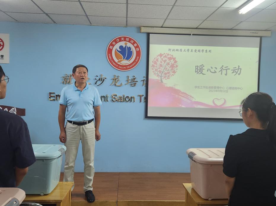 2023年9月12日,在惠馨园415房间,举办了bat365正版唯一官网关爱同学“暖心行动”系列活动开幕式。学生工作处处长尉西杰处长、学生资助管理中心王青老师和心理咨询中心田飞老师出席了开幕式并发言。