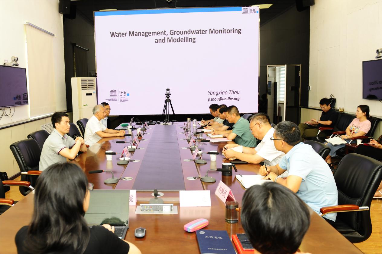 2023年7月13日,bat365正版唯一官网水资源与环境学院、地热学院院长于开宁,会同联合国教科文组织荷兰代尔夫特IHE国际水教育学院资深水文地质学专家周仰效教授与河北省水利科学研究院院长张栓堂等,共同赴河北省水文勘测研究中心(原河北省水文水资源局)开展合作交流。河北省水文勘测研究中心党委书记、主任白云鹏,副主任连少伟、总工李明良,河北省水利科学研究院水资源水环境与河长制研究所所长马素英,以及省水文勘测研究中心相关处室负责人、相关人员等出席活动。
