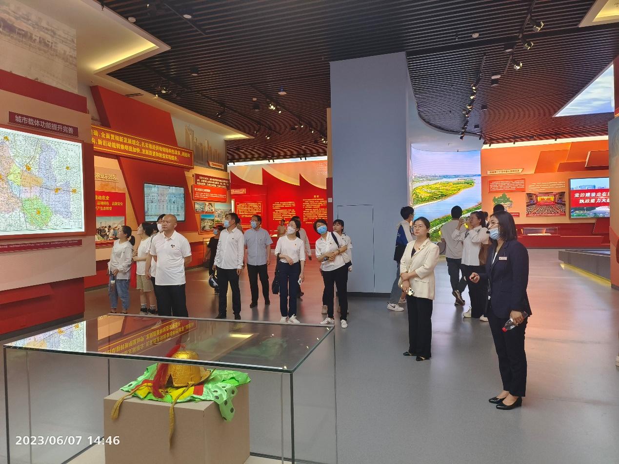 展厅分为“石门风雨路”“开国第一城”“筑梦石家庄”三部分,馆内设有石家庄解放第一座大城市的光辉历程和历史脉络,全体党员同志在一幅幅画卷、一座座雕像、一件件文物、一条条轨迹中连连发出赞叹,感慨革命先驱的伟大与聪慧,同时也为省会石家庄能走到今天的景色优美、交通便利、经济发展前景良好的场景而感到激动与自豪。