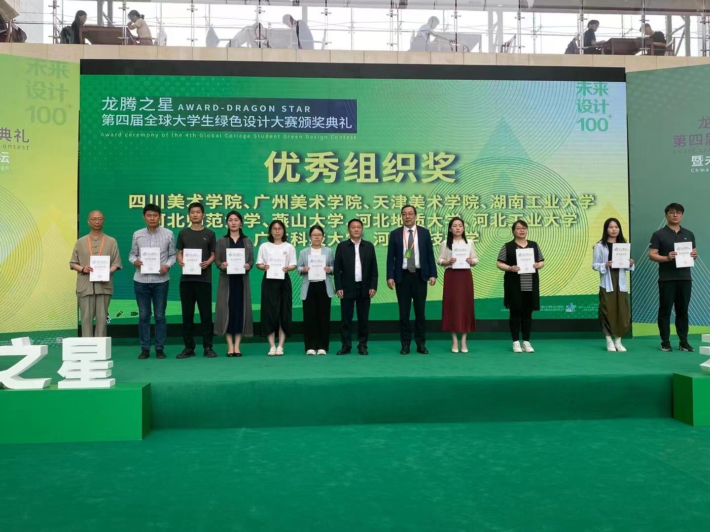 5月21日上午第四届“龙腾之星”全球大学生绿色设计大赛颁奖典礼在河北科技大学隆重举行,bat365官网艺术学院院长齐勇,视觉传达设计教研室主任郑新涛及获奖学生张博超受邀参加。此次大赛bat365官网艺术学院多个学生作品获奖,其中赵猛老师指导的视觉传达专业学生张博超在第四届“龙腾之星”全球大学生绿色设计大赛中获得“金奖”,奖金5000元。bat365正版唯一官网获“优秀组织奖”。