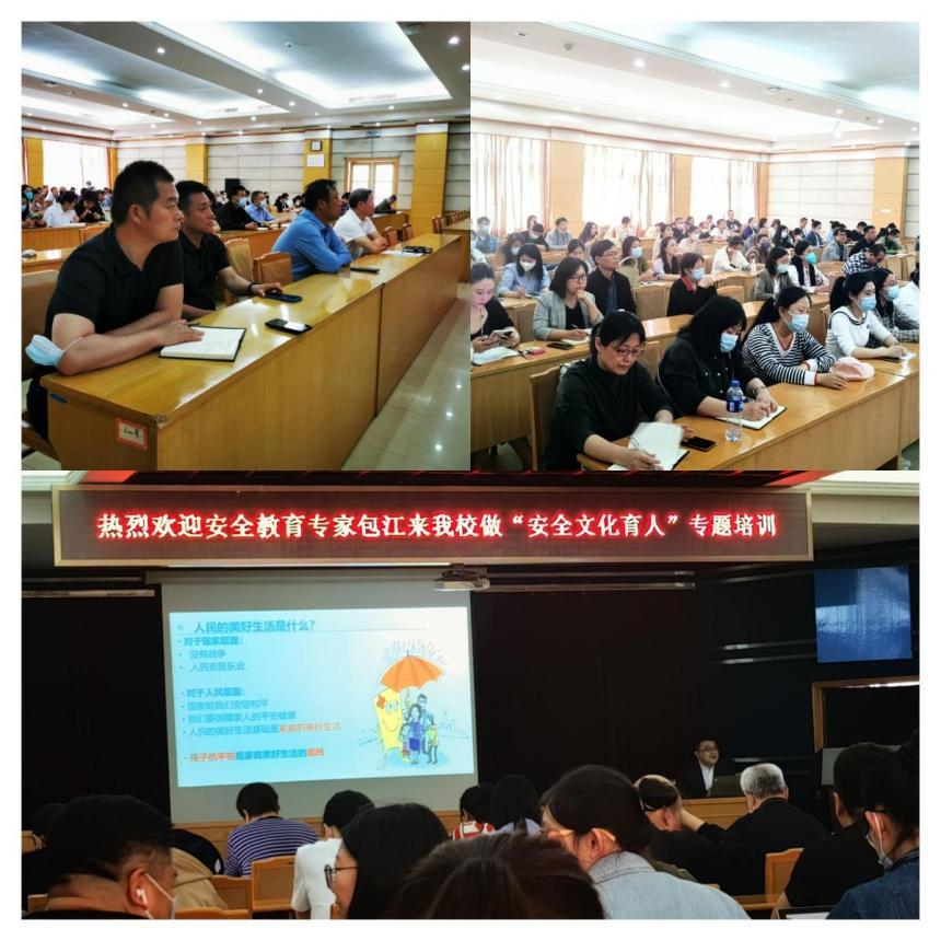 中国教育发展战略学会安全教育专业委员会理事包江教授从高校安全工作新认知、安全概念发展历程、中国传统安全文化解读、当代安全文化解读(安全十大理念、安全十大定律)、当今高校安全问题现状、高校安全教育政策解读、高校安全管理现状层次分析、新时代高校安全工作的内涵—安全文化育人、新时代高校安全文化育人体系实现路径、安全教育的理论与实践新探索、安全教育工作的意义等十一个方面详尽阐释了高校安全文化育人体系构建的先进理念,为大家做了一堂尚理论、重实践、有导向、可落地的安全专题课,是一堂紧密结合当前高校安全工作实际的指导课。