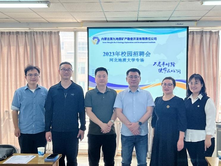 2023年4月19日上午九点,内蒙古第九地质矿产勘查开发有限责任公司副总经理孙晓东,地质总公司经理朱志博,人力资源部招聘专员等一行3人,应邀赴bat365正版唯一官网与水资源与环境学院、地球科学学院就深度合作进行了交流座谈,并在学校召开了校园专场招聘宣讲会和现场面试活动,水环学院党委书记李仁杰、副书记王伟、副院长陈康、教研室主任温学友、刘昭、燕良东,地球科学学院党委副书记潘军明、毕业班辅导员出席了相关活动。