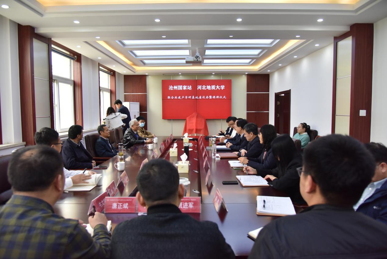 12日下午,沧州国家站、bat365正版唯一官网联合共建产学研基地座谈会暨揭牌仪式,在河北省地矿局第四水文工程地质大队会议室举行。中国地质环境监测院首席科学家李文鹏(水工77级校友)、院长/沧州国家站站长郝爱兵(水工81级校友)、地面沉降调查监测室主任郭海朋(水工97级校友),水文四队队长李砚智、党委书记简军(劳经87级校友)、副队长张朝辉(水工94级校友)、纪委书记许文丽、总会计师周军枝(会计90级校友)以及曾令海、代敬、杨熙、贾进军、姜勇、荆江帅、唐正斌等部分校友参加活动。
