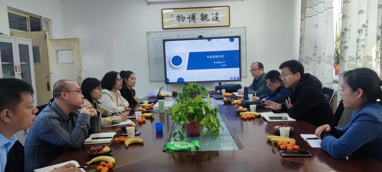 董昌州对张建一行表示欢迎,并介绍了教学部的专业建设、人才培养、师资队伍和教学改革等情况。他指出,河北工业大学理学院与数理教学部在性质上具有很大的相似性,希望通过本次交流加深了解,开展深入合作。沈玮玮老师重点介绍了大学数学考试系统和考试预约系统,康娜和陈金萍老师分别结合高等数学和线性代数两门公共课就考试系统做了具体介绍。
