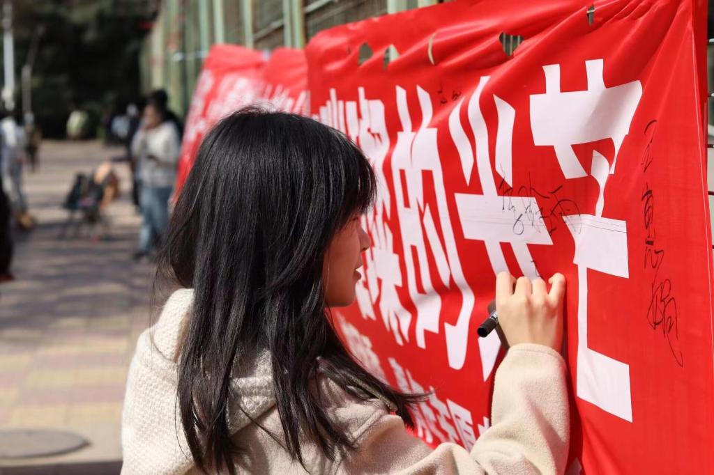为增强学雷锋活动的吸引力、感召力,在广大青年中营造学雷锋、做先锋的良好氛围,3月3日,校团委、青年志愿者协会举办“人人忆雷锋,人人画雷锋”活动,同学们通过描绘雷锋肖像、在“争做时代新青年——让雷锋精神在新时代绽放更加璀璨的光芒”横幅上签字,追忆雷锋精神,传递志愿热情,挖掘和展现雷锋精神的时代价值,激励青年用雷锋精神汇聚起民族复兴的磅礴力量。