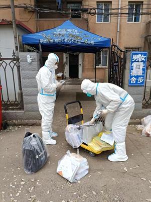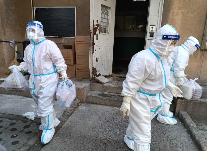 教师志愿者们为学生进行三餐等物资配送和药品发放