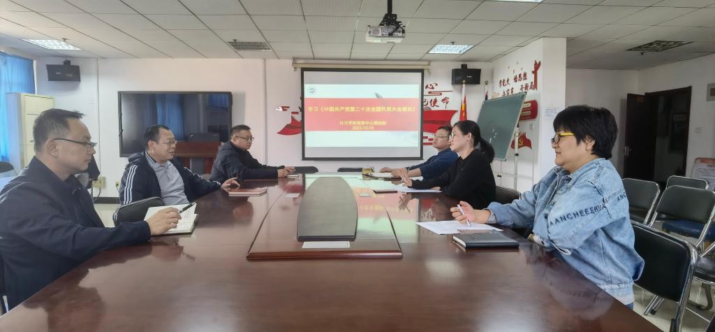 下午15时,经济学院党委理论学习中心组在综合楼806认真学习二十大报告内容。