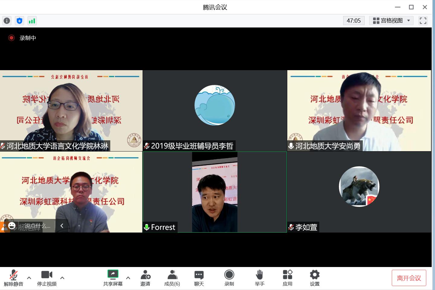 为拓展毕业生就业市场和学生实习岗位,语言文化学院领导班子继续积极开展“访企拓岗促就业”活动。9月2日下午,语言文化学院与深圳彩虹源科技有限公司在线上座谈,对学生实习、就业等方面开展合作进行了商谈。学院党委书记林琳、党委副书记杨旭辉、副院长安尚勇、毕业年级辅导员李哲,彩虹源科技有限公司总经理、bat365官网2005级英语专业校友霍景金参加座谈。杨旭辉主持了座谈会。