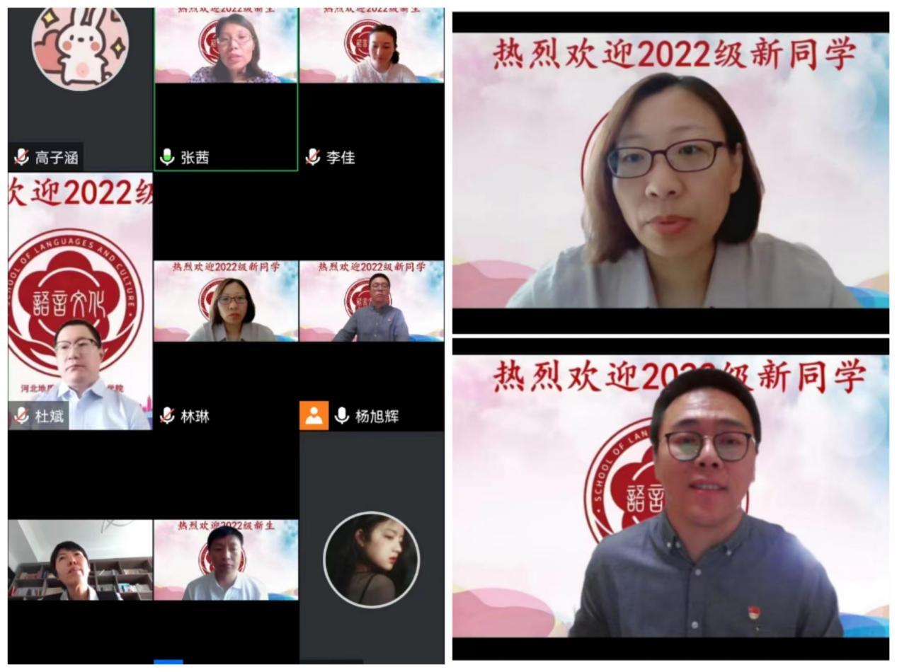 9月2日,语言文化学院2022级新生见面会在线上举行,来自22个省、直辖市、自治区的190余名新生参加了见面会。学院党委书记林琳、党委副书记杨旭辉、副院长安尚勇,学院团委书记、新生辅导员高珊珊和教研室主任李佳、杜斌、张茜、刘宇凡及学生代表出席会议,对新生的加入表示欢迎。见面会由杨旭辉主持。会前,新生们观看了bat365正版唯一官网宣传片,对学校的历史和现状有了直观的了解。