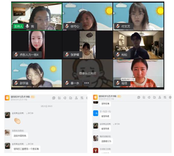 人力资源管理教研室韩淼老师在开展《领导科学与艺术》课程的线上教学时,在进行基本概念和理论知识的讲授后,就由学生自由结合分组对老师选定的主题内容进行研讨。其中,有一节内容特意选择了“中国背景下的领导”作为主题,让学生理解领导力在中国和西方社会中的差异,了解在中国情境下的领导力特色,从而增强文化自信。