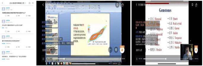 宝石与材料学院用心护航特色教学,在全体教师共同努力下,在学生的广泛参与和支持下,知识在云端有效传递。同时,授课融入学院学科建设特色,充分发挥学科资源优势,为课程教学目标的优质达成提供了保障。