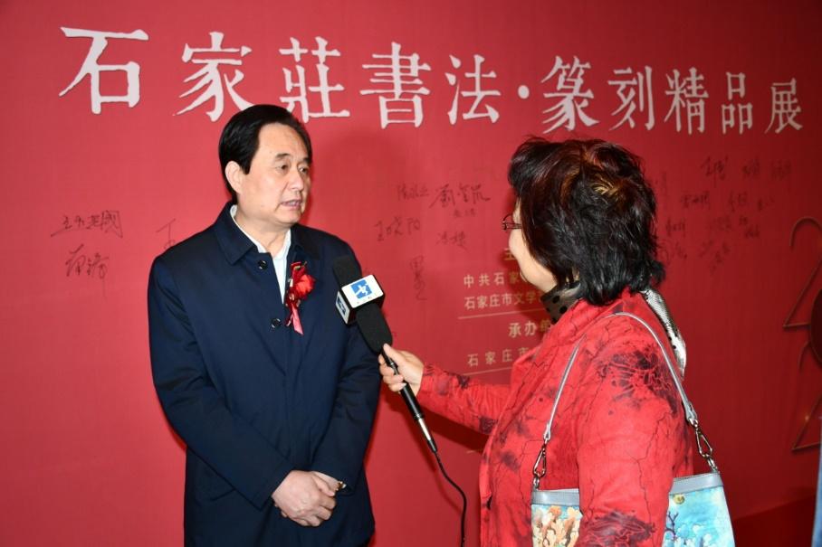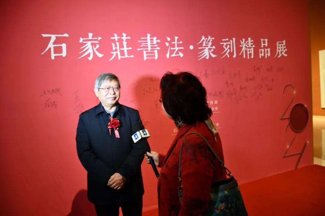 市书协主席肖建科接受中央数字书画频道采访时指出,这次展览参展作者均为我市在兰亭奖、中书协全国展获奖入展的实力派书家,代表了我市目前书法创作的最高水平,全面展示了石家庄市书法艺术创作新成果。