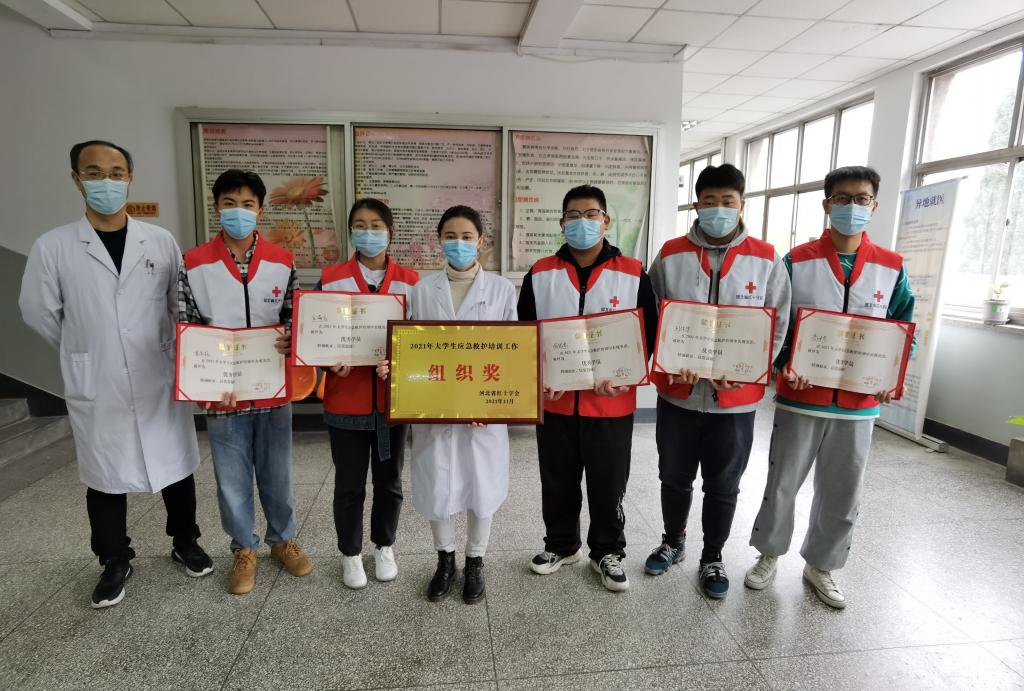 11月12日,在河北省红十字会、教育厅、财政厅等六个部门组织的“关爱生命、救在身边”2021年大学生应急救护培训工作联合评估会议上,经过综合工作汇报、资料抽查、现场考核等多方面考评,授予了bat365官网2021年度大学生应急救护培训工作“组织奖”,水资源与环境学院张银厚、刘俊泽、潘禹杭、李坤原、庞萌垚五名同学获得“优秀学员”荣誉证书。