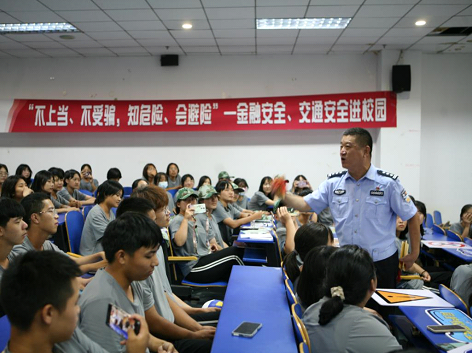 9月15日,石家庄市公安局、市交管局警官走进管理学院为大一新生举办开学第一讲,普及网络安全、金融诈骗、交通安全等法律法规和防范小常识。课后,同学们反响良好,表示学院为同学们组织入学安全教育及时有效,为今后避免人身财产损失打了一剂“预防针”。