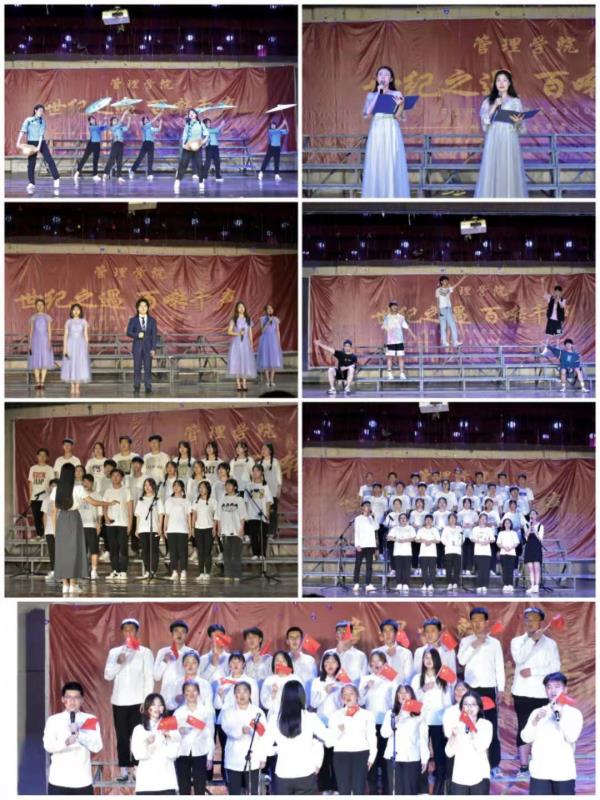 从1921到2021,中国共产党走过了整整一百年。为庆祝建党一百周年,继承光荣传统,弘扬民族精神,彰显当代青年大学生的爱国情怀,管理学院于5月14日晚在北校区综合楼举办建党100周年“世纪之遇 百啭千声”庆典晚会。管理学院院长王汉新、党委书记袁志忠、副书记初汉芳及200余名师生共同欣赏了这场精彩的红色盛典。