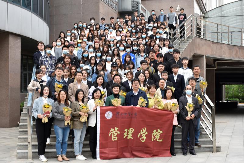 郭雅洁以及管理学院班子成员为到场的199名学生志愿者代表颁发疫情防控优秀志愿者荣誉证书,学生代表向奋战在一线的辅导员老师和教师代表献花。