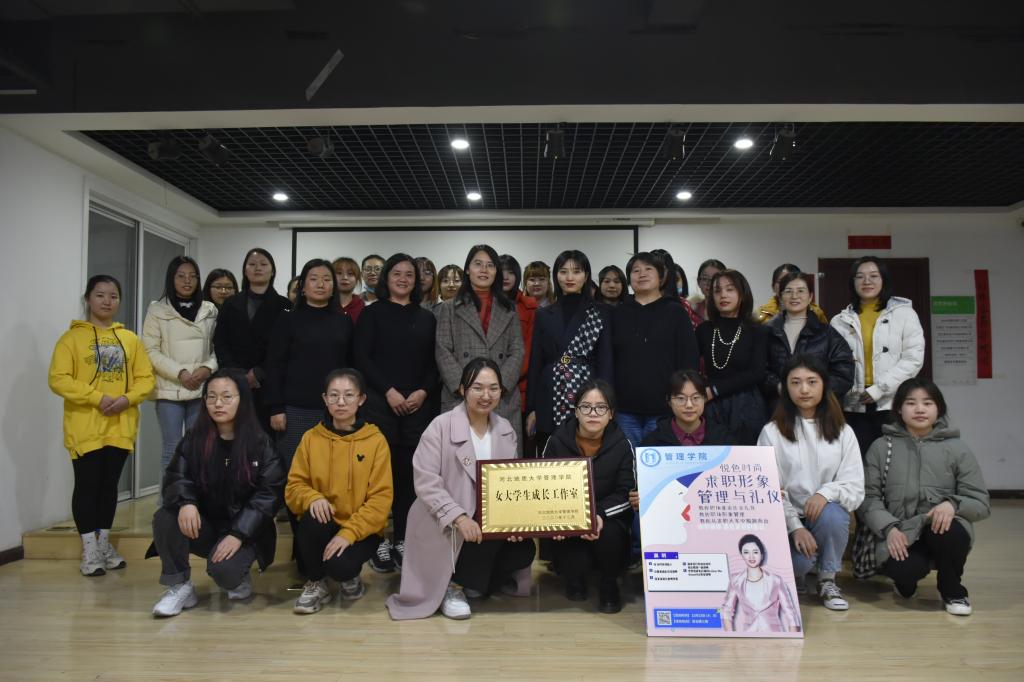 12月23日,管理学院女生成长工作室揭牌仪式在综合楼三楼路演大厅举办。学生工作处处长尉西杰、悦色时尚创始人晨玥、管理学院党委书记袁志忠、副书记初汉芳出席,管理学院全体辅导员及女生代表参加了本次活动。