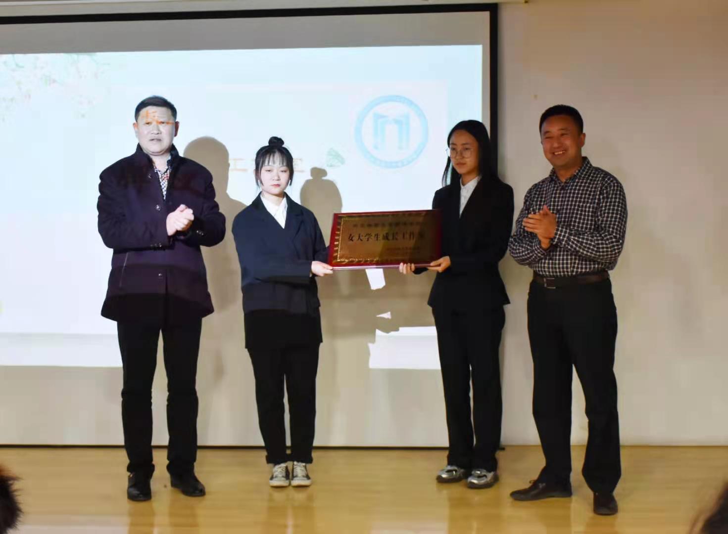 尉西杰、袁志忠共同为学院女生成长工作室揭牌,并为晨玥女士颁发导师聘书