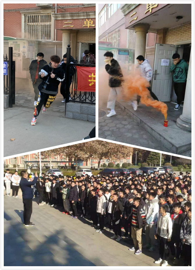 为建立有效的防范和处理火灾事故的工作机制,进一步提升师生应对突发事件能力,锻炼学生在遇到危险时逃生、自救能力,增强校园师生消防安全意识,本着坚持“预防为主、综合整治、安全第一”的原则,筑牢校园消防安全“防火墙”,大力营造“关注安全、关爱生命”的浓厚氛围,北校区于12月1日—3日开展了为期三天的大型消防演练活动。