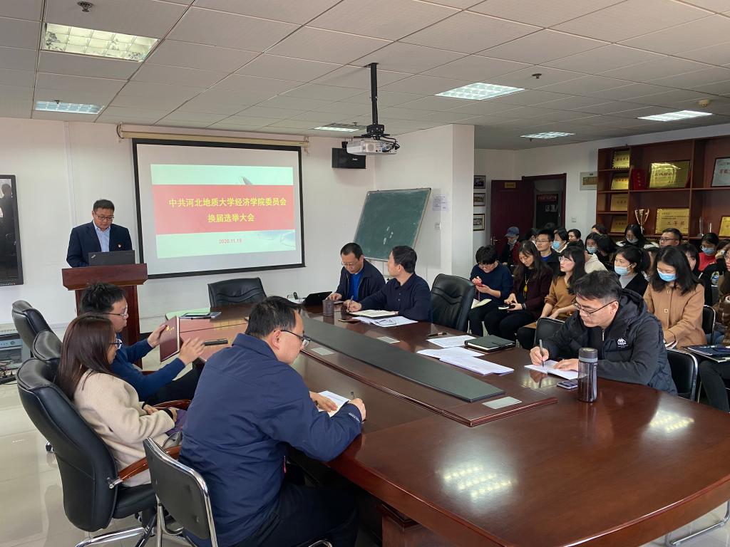 11月19日下午,经济学院党委换届大会在综合楼806举行。经济学院全体师生党员参加大会。大会由学院党委副书记赵明主持。