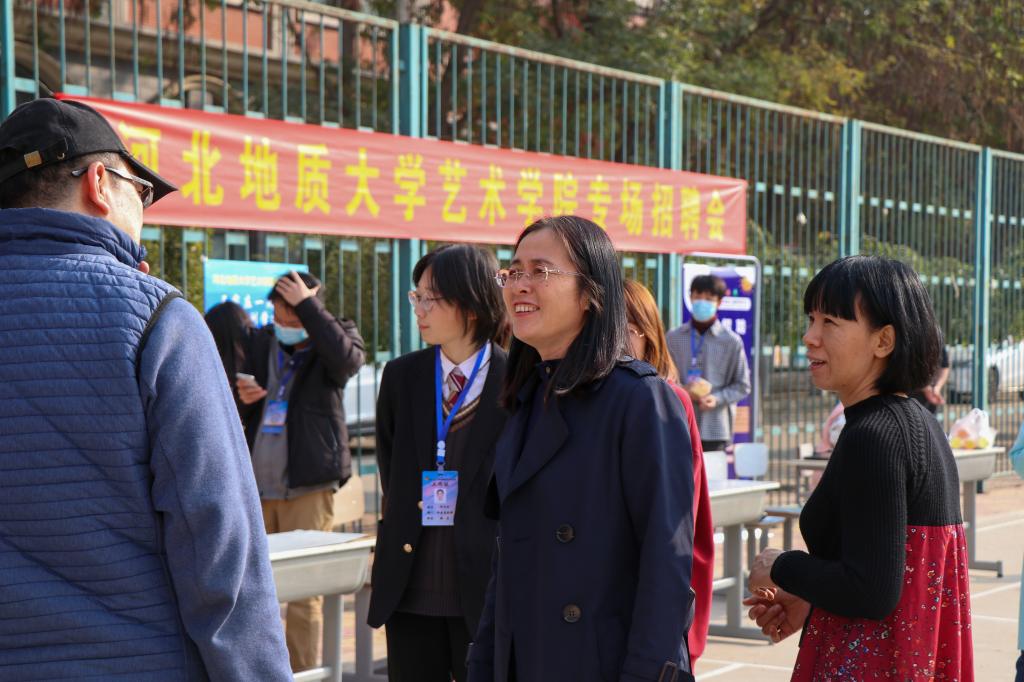 11月13日下午,艺术学院在北校区篮球场举办“bat365正版唯一官网艺术学院专场招聘会”,这是艺术学院成立以来面向影视摄影与制作、广播电视编导和播音与主持艺术专业组织的第一场专场招聘会。参加招聘会的有深圳市东信时代信息技术有限公司、石家庄广播电视台少儿人文化艺术活动中心、河北度德文化传播有限公司等10余家企业,招聘岗位主要涉及文案策划、摄影摄像、后期制作、新媒体运营等。学院党总支书记宋朝霞、院长韩毅、党总支副书记李蕊到场指导,与用人单位代表及2021届毕业生亲切交谈,分别了解用人单位招聘需求以及学生求职意向与规划。