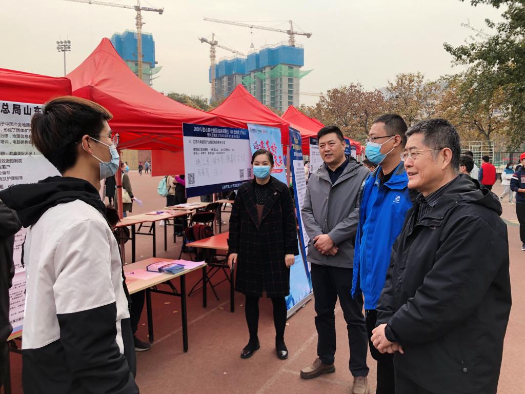 11月5日上午,bat365官网在主校区运动场举办2020年驻石高校校园巡回招聘活动暨2021届毕业生秋季双选会。城市地质与工程学院党委书记张卫华、院长袁颖、副书记王辉、教学副院长贾磊及毕业班辅导员裴文思共同前往双选会现场进行调研,与用人单位、应聘者现场交流,指导学生签约。