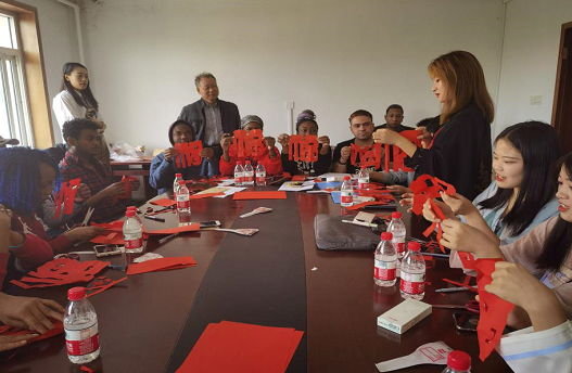 bat365官网汉语国际教育专业的学生给留学生耐心讲解了中国传统节日中秋节和国庆节的历史渊源,并精心准备了剪纸、诗朗诵、投壶等传统文化活动项目。在校留学生积极参与各项活动,深入体验了中国传统文化。