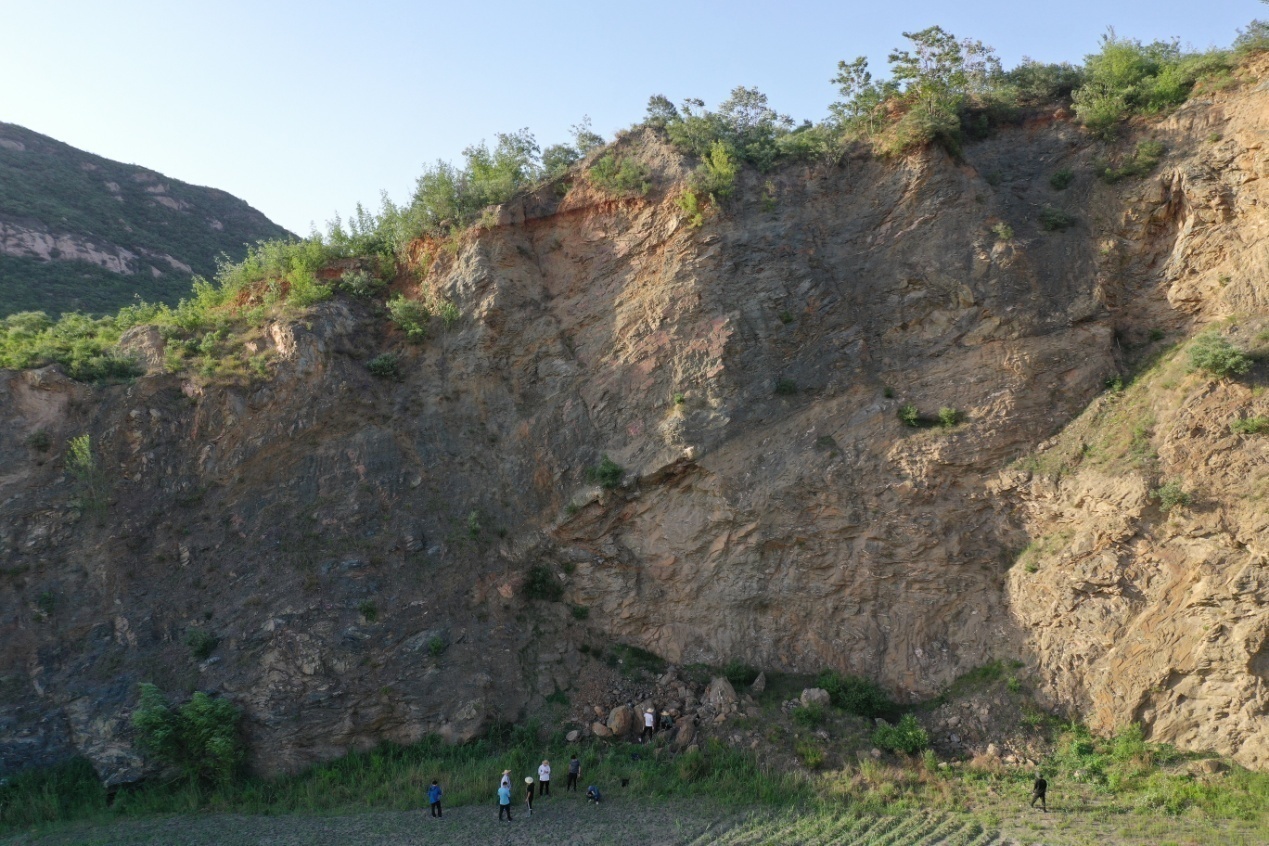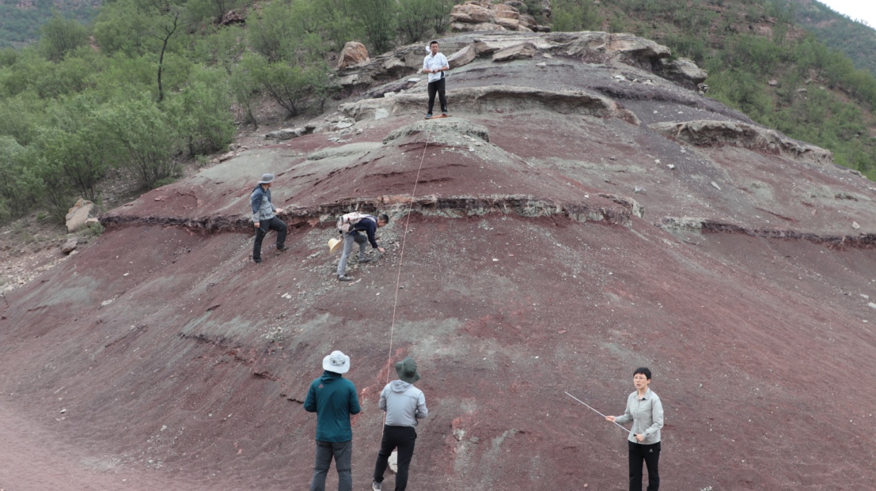 图2临城实习基地,水资源与环境学院老师实地指导地层倾角的测量