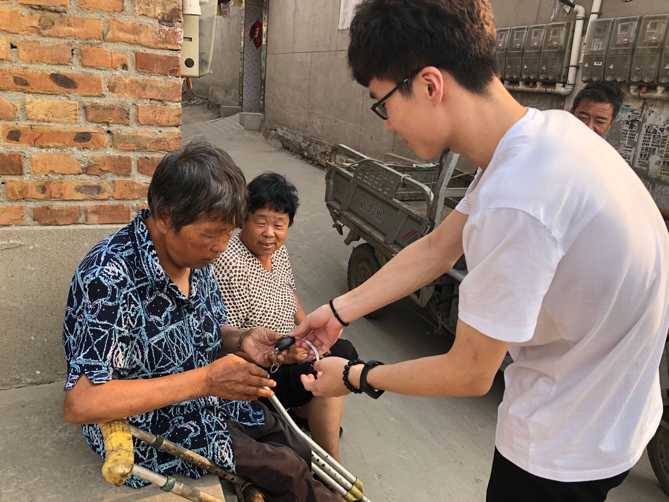 资源学院小分队成员为行动不便的老人赠送报警器