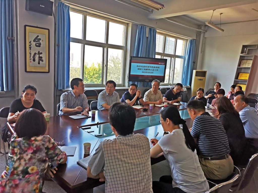 9月3日下午,校长王凤鸣、副校长赵永强在教务处长李文斌的陪同下,到信息工程学院调研工程教育认证工作。学院院长亢俊健、书记王春恋、副院长张翠军、副书记伦关臣,院长助理、电子信息工程和软件工程专业负责人,教务处、数理学院、社科部、外国语学院相关负责人及工程教育认证相关学院领导和老师参加调研。