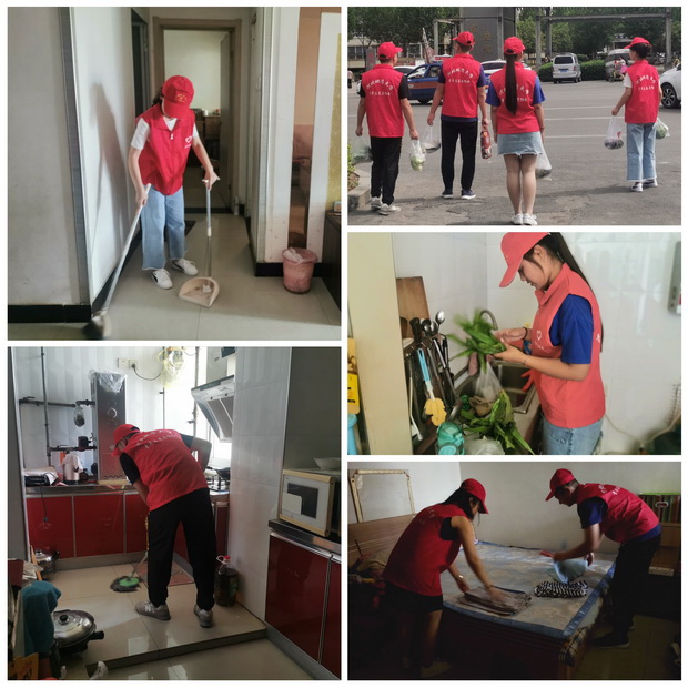 志愿者们为老人打扫起居环境、整理衣物、摘菜洗菜等日常照料志愿服务活动