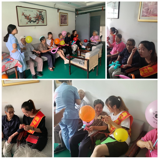 志愿者倾听老人讲故事、做养生知识介绍、垃圾分类常识介绍、手工剪纸