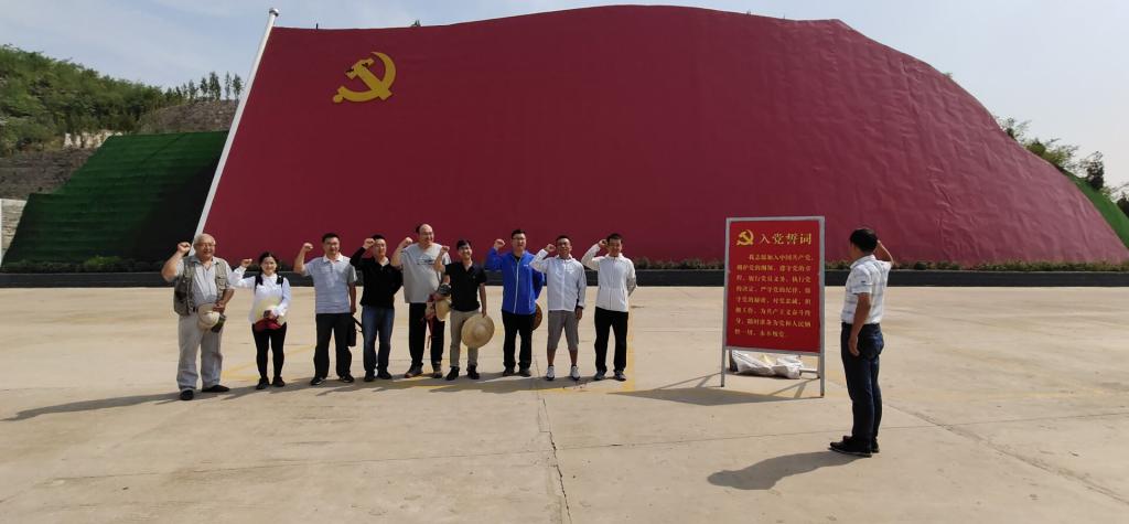 实习队临时党支部新老党员在党旗前庄严宣誓,重温入党誓词。大家内心非常的激动,纷纷表示要踏着先列的足迹,脚踏实地埋头苦干,做好实习的基础工作,在地质填图实习教学方面好好的打一场“伏击战”。参观后,实习队沿公路对寒武系张夏组做了初步调查,发现了叠层石及三叶虫等特征化石,为实习队今后建设打下了基础。