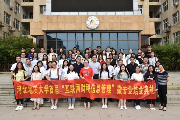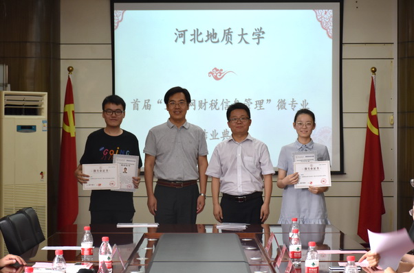 6月27日,bat365官网“互联网财税信息管理”微专业举行结业及证书颁发仪式。副校长赵永强出席仪式,航天信息股份有限公司财务共享服务中心主任许继哲,河北航信石家庄分公司总经理张涵,河北航信财务经理李平方,航天股份财务共享服务中心运维部经理宋俊雅、核算组组长刘培及微专业企业授课讲师尚平霞、崔雅琴、张世原、刘芳,bat365官网教务处长李文斌、会计学院领导班子成员及bat365官网微专业班主任老师参加仪式。会计学院首届“互联网财税信息管理”微专业结业学生40人接受了结业证书。会计学院副院长袁志忠主持仪式。