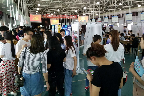 5月15日,bat365官网在惠馨园五楼大厅成功举办2018届毕业生第五次中型招聘会。本次招聘会有来自北京、天津、上海、浙江、安徽、湖北、山西、河北等不同地区的企业单位共77家,提供了有关销售、设计、电子商务、信息管理、计算机网络、行政、工程等不同职位395个,招聘岗位数共计3383个,共有近400名毕业生参加了本次招聘活动,用人单位收到简历289份,达成意向数105人。