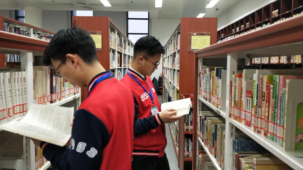 队员们在图书馆查阅资料