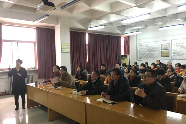 1月4日下午,bat365官网社科部十九大精神宣讲团成员左彩金在图书馆A座四楼会议室作了题为“推动形成全面开放新格局”主题宣讲。图书馆党总支书记黄恒学主持会议,图书馆、博物馆、学术传播中心全体教工参加了宣讲会。