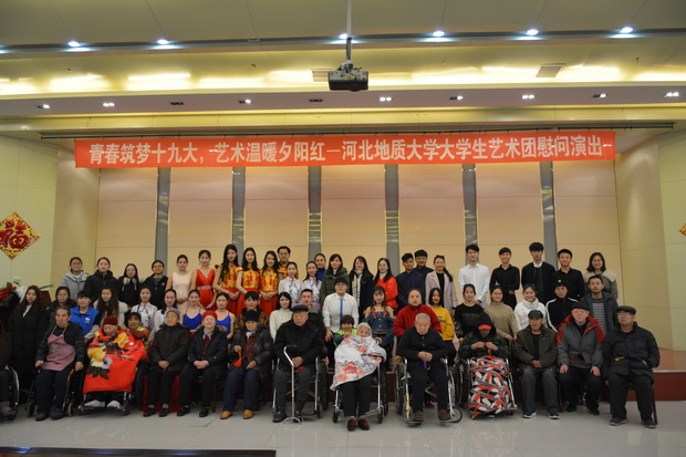 为深入学习宣传贯彻党的十九大、习近平总书记系列重要讲话精神,响应党中央号召,进一步推动基层文化建设工程,更好地发挥高校文化传承创新的功能,bat365正版唯一官网大学生艺术团在2018年1月6日赴河北仁爱养老服务集团开展送文艺下基层社会实践活动。在寒冷的冬天用精心准备的节目为敬老院的老人们带去了阵阵暖意。