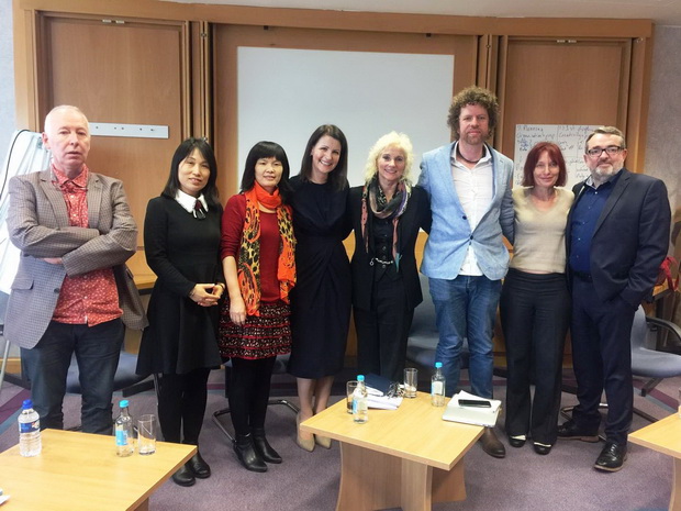 图为:连季婷、岳娟丽与厄尔斯特大学老师合影