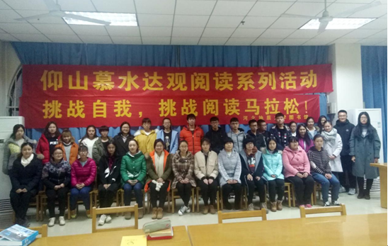 本次阅读马拉松活动是在新的交流媒介不断出现、很多读者养成了“浅阅读”、“数字阅读”等阅读习惯的背景下举行的,目的在于引领读者回归“纸质阅读”,走进“深阅读”。北校区图书馆和仰山慕水办公室联合举办了首届阅读马拉松挑战活动。