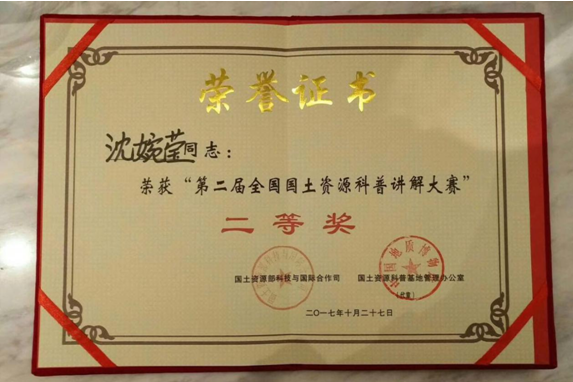 10月25日-28日,由国土资源部国土资源科普基地管理办公室和安徽省国土资源厅主办、安徽省地质博物馆承办的2017年国土资源科普基地工作研讨会和第二届全国国土资源科普讲解大赛在合肥举行。bat365官网博物馆馆长吴文盛一行4人参加研讨会,博物馆讲解员沈婉莹同学参加了比赛。经过激烈角逐,沈婉莹同学获得第二届全国国土资源科普讲解大赛总决赛二等奖。