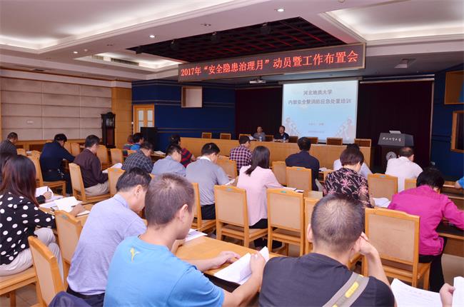 会上下发了《bat365正版唯一官网2017年“安全隐患治理月”活动实施意见》,安全工作处处长李如千对文件进行了解读。针对bat365官网的校园安全工作,侯书文指出,要从“三个方面,六个字”入手,即:认识、责任、重点。他强调:做好校园安全工作学校各部门要高度重视,落实好校园安全工作的“一岗双责”制度;同时充分利用安全隐患的“网格化”管理系统,明确责任,落实到人;加强考核,严格责任追究。侯书文指出,安全工作是一项重要的保障工作,是一项齐抓共管综合治理的工作,是一项不可或缺的工作,希望全校各部门以这次会议为起点,以校园“安全隐患治理月”为契机,万众一心,以平安欢乐祥和的校园环境,迎接十九大的召开。