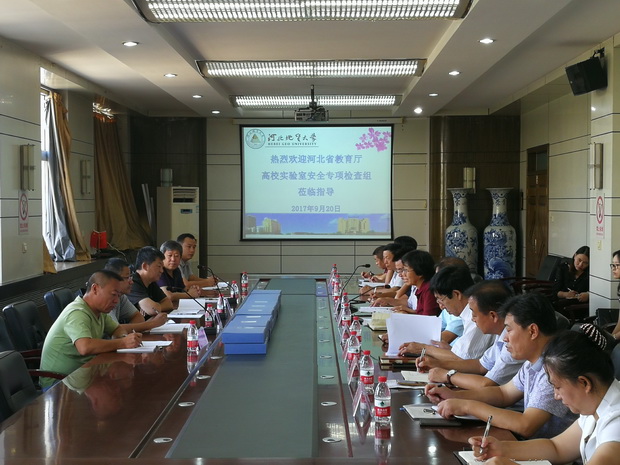 9月20日上午,河北省教育厅高校实验室安全检查组专家高洪旺、晁怀祥、熊廷顺莅临bat365官网检查指导工作。副校长张小平出席实验室安全管理工作汇报会,校长办公室、财务设备处、科技处、教务处、校园规划处、安全工作处、后勤集团、现代教育技术中心、实验实践教学中心等相关部门负责人参加了汇报会。会议由实验实践教学中心主任王生力主持。