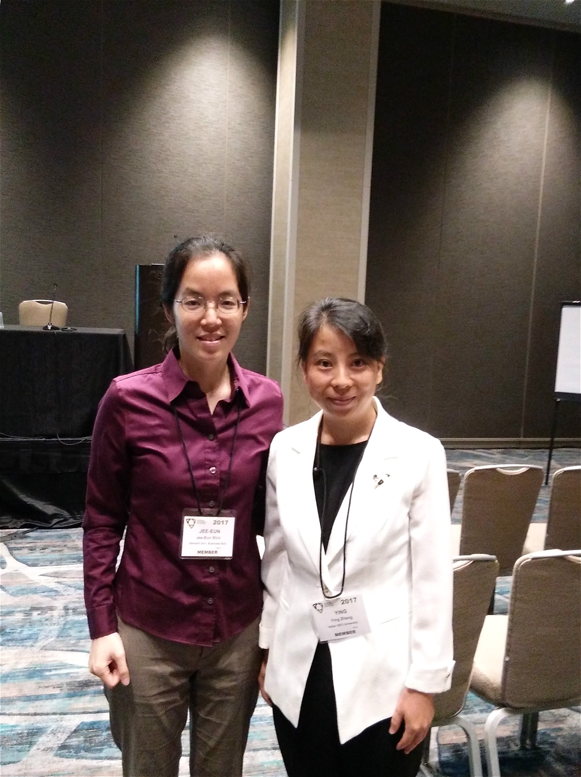 图为:张英与论文评议人哈佛大学博士生Jee Eun Shin合影留念。
